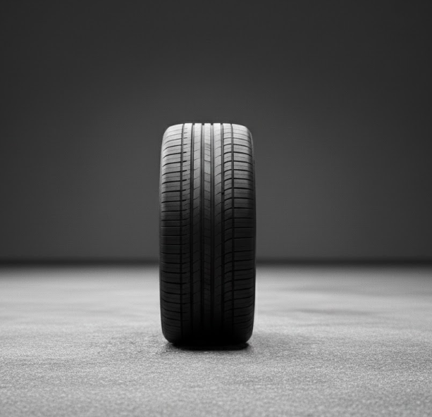 Detalle de la banda de rodamiento de una llanta, utilizada para identificar el nivel de desgaste y su impacto en la seguridad al conducir.